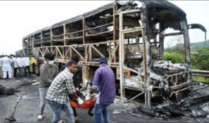 आंध्र प्रदेशातील कुरनूल येथे खासगी बसला आग लागून २० प्रवाशांचा होरपळून मृत्यू..